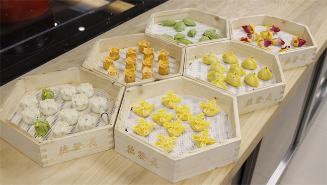 走出低谷,馬順莉認定了這份工作,也立志要在這個崗位上發(fā)光發(fā)熱。馬順莉說:“我們有一個研發(fā)小組,二十幾個人,從1985年到現(xiàn)在,一直研發(fā)餃子宴。從當時的十幾個品種,發(fā)展到現(xiàn)在,我們有318個品種的餃子;烹調(diào)工藝上,從蒸、煮,發(fā)展到蒸、煮、煎、炸、烙、烤、燴等多種烹調(diào)方法,真正體現(xiàn)了‘一餃一形一態(tài) 百餃百餡百味’的特點。”