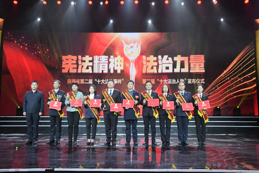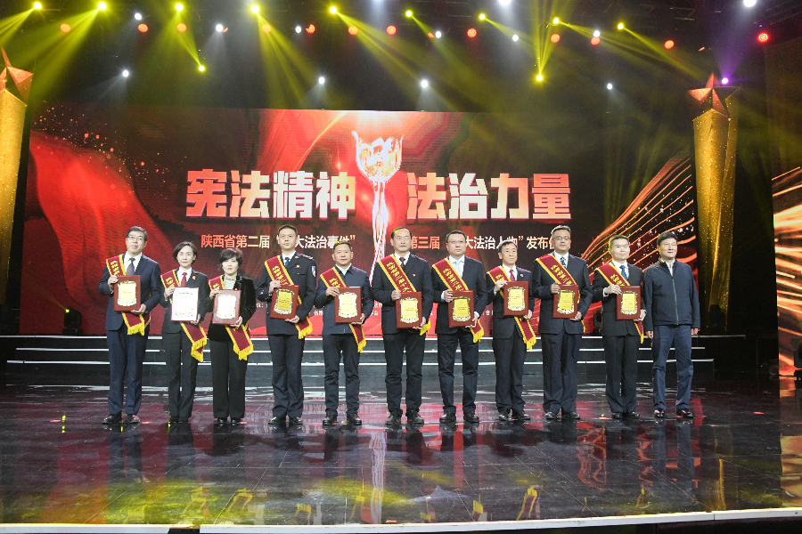 發(fā)布儀式現(xiàn)場播放了“十大法治事件”“十大法治人物”及提名獎(jiǎng)的先進(jìn)事跡短片,揭曉了陜西省第二屆“十大法治事件”、第三屆“十大法治人物”及提名獎(jiǎng)獲得者。“全國首創(chuàng)黨委(黨組)書記點(diǎn)評(píng)法治工作機(jī)制切實(shí)夯實(shí)‘一把手’履行法治建設(shè)責(zé)任”等10個(gè)事件被評(píng)為第二屆“十大法治事件”、“陜西出臺(tái)自由貿(mào)易試驗(yàn)區(qū)條例助推自貿(mào)區(qū)高質(zhì)量發(fā)展”等10個(gè)事件被評(píng)為第二屆“十大法治事件”提名獎(jiǎng),西安交通大學(xué)法學(xué)院二級(jí)教授馬治國等10名同志被評(píng)為第三屆“十大法治人物”、咸陽市中級(jí)人民法院速裁中心主任李春麗等10名同志被評(píng)為第三屆“十大法治人物”提名獎(jiǎng)。