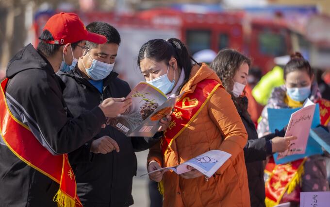 2021年12月4日上午,洛浦縣科技局工作人員在該縣艾德萊斯廣場,正在向當(dāng)?shù)鼐用襁M(jìn)行講解“科普知識(shí)”。買買提艾力·艾尼瓦爾攝