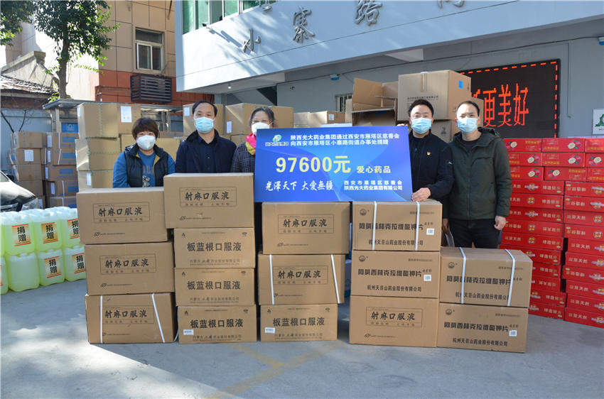 12月15日、20日,陜西光大藥業(yè)集團股份有限公司向陜西省商貿(mào)學(xué)校、西安市雁塔區(qū)小寨路街道辦事處捐贈價值10余萬元的防護口罩、消毒液等防疫物資。