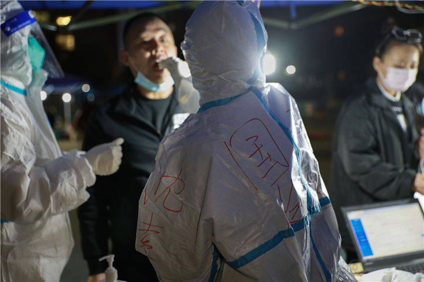 西安國際醫(yī)學(xué)中心醫(yī)護人員進行核酸采樣工作。
