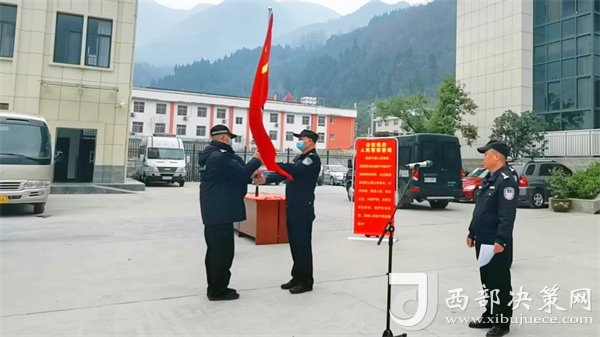 副縣長(zhǎng)、公安局黨委書(shū)記、局長(zhǎng)裴新民向鎮(zhèn)巴縣公安局黨員突擊隊(duì)授旗