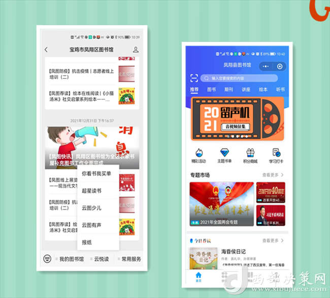 閉館不閉網(wǎng),線上服務不打烊。自12月23日閉館以來,區(qū)圖書館整合各類數(shù)字資源,免費提供豐富的線上服務,滿足不同年齡群體讀者的閱讀需求,更新“超星閱讀”APP,電子書、數(shù)字期刊、講座、繪本、聽書等海量資源為讀者提供高質量的閱讀福利。利用“陜西數(shù)字文化網(wǎng)”“鳳翔區(qū)圖書館官方網(wǎng)站”“鳳翔區(qū)圖書館”公眾微信號,線上開設【鳳圖戰(zhàn)疫】【鳳圖薦讀】【紅色故事繪】【館員姐姐講故事】【館員有聲薦讀】【鳳圖文苑】等閱讀服務專欄,提供疫情防控知識、繪本閱讀、親子故事講讀、線上展覽等,讀者通過關注“寶雞市鳳翔區(qū)圖書館”公眾號、網(wǎng)站享受24小時線上服務,通過鳳翔區(qū)圖書館總分館群,將這些優(yōu)質數(shù)字資源向基層分館輸送,讓廣大讀者暢享“云端閱讀”。