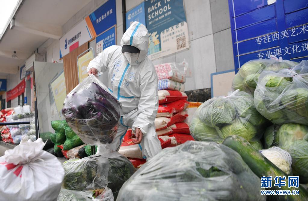 1月4日,志愿者在西安市雁塔區(qū)德善愛心共享廚房打包食物。新華社記者 張博文 攝