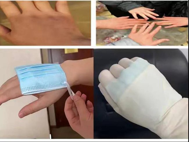 冬季的室外,還要反復(fù)進行手部消毒,一天工作下來,核酸采樣隊隊員們的手都被凍得像石頭一樣,又紅又腫。為了解決這個問題,北關(guān)核酸采樣隊隊長解林清輾轉(zhuǎn)反側(cè),終于想到可以把外科手套折疊后墊到手背關(guān)節(jié)部位,取得保暖的效果。經(jīng)過實踐操作,這項技術(shù)已經(jīng)在各核酸采樣隊伍內(nèi)推廣使用。