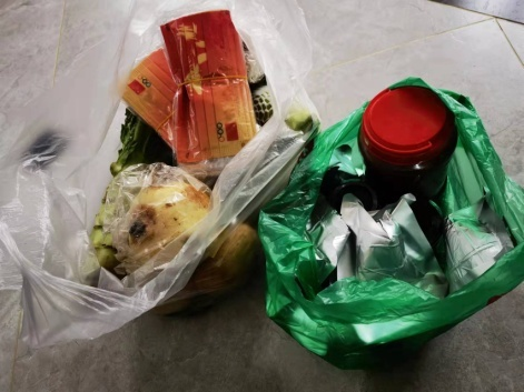 我下沉在我居住的小區(qū)百貴園,小區(qū)不大,實(shí)際入住了244戶。下沉干部和志愿者主要負(fù)責(zé)愛心菜的消殺、接收、分揀、分組投送入戶,各個(gè)流程有條不紊地進(jìn)行著,我負(fù)責(zé)一個(gè)單元的投送入戶。