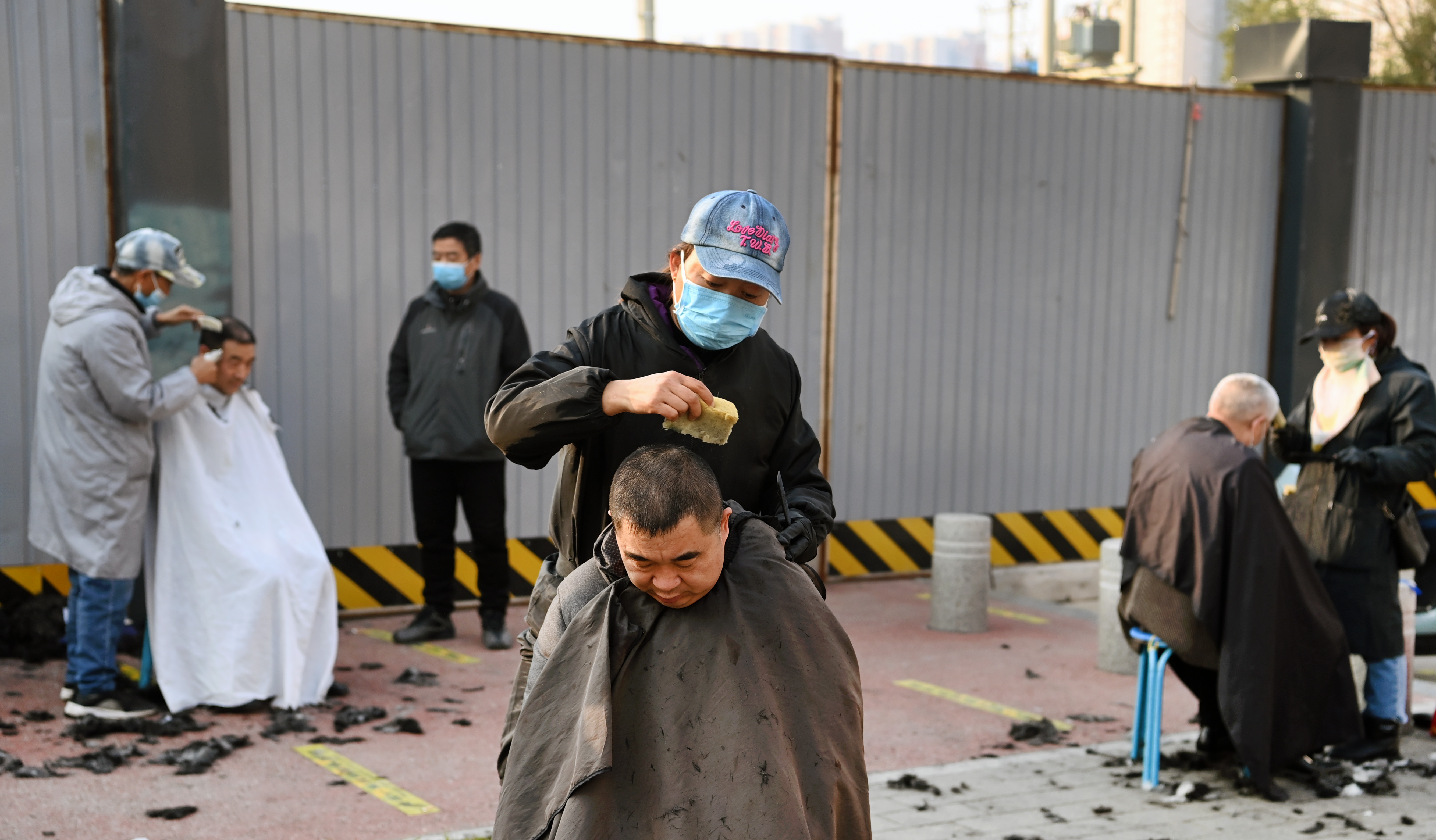 1月17日,西安市未央?yún)^(qū)一家理發(fā)店在路邊設(shè)點,方便居民理發(fā)。