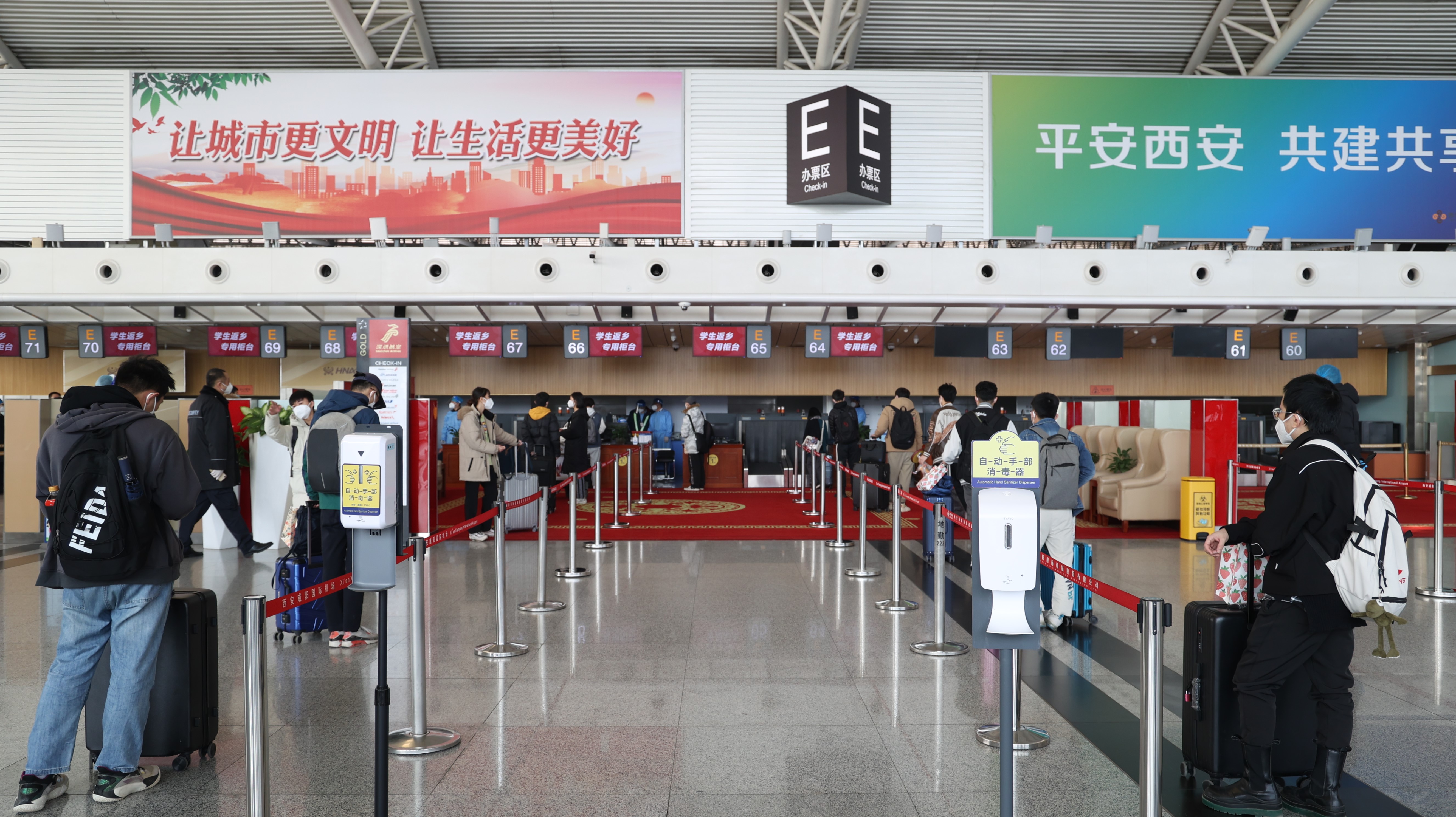 西安咸陽(yáng)國(guó)際機(jī)場(chǎng)相關(guān)負(fù)責(zé)人表示,為確保學(xué)生順暢返鄉(xiāng),機(jī)場(chǎng)召集各一線保障單位研究制訂了學(xué)生包機(jī)保障方案,細(xì)化學(xué)生乘車抵達(dá)、進(jìn)入航站樓測(cè)溫查驗(yàn)、值機(jī)辦理、行李托運(yùn)、安全檢查、候機(jī)、登機(jī)等各環(huán)節(jié)的防疫和服務(wù)保障措施。