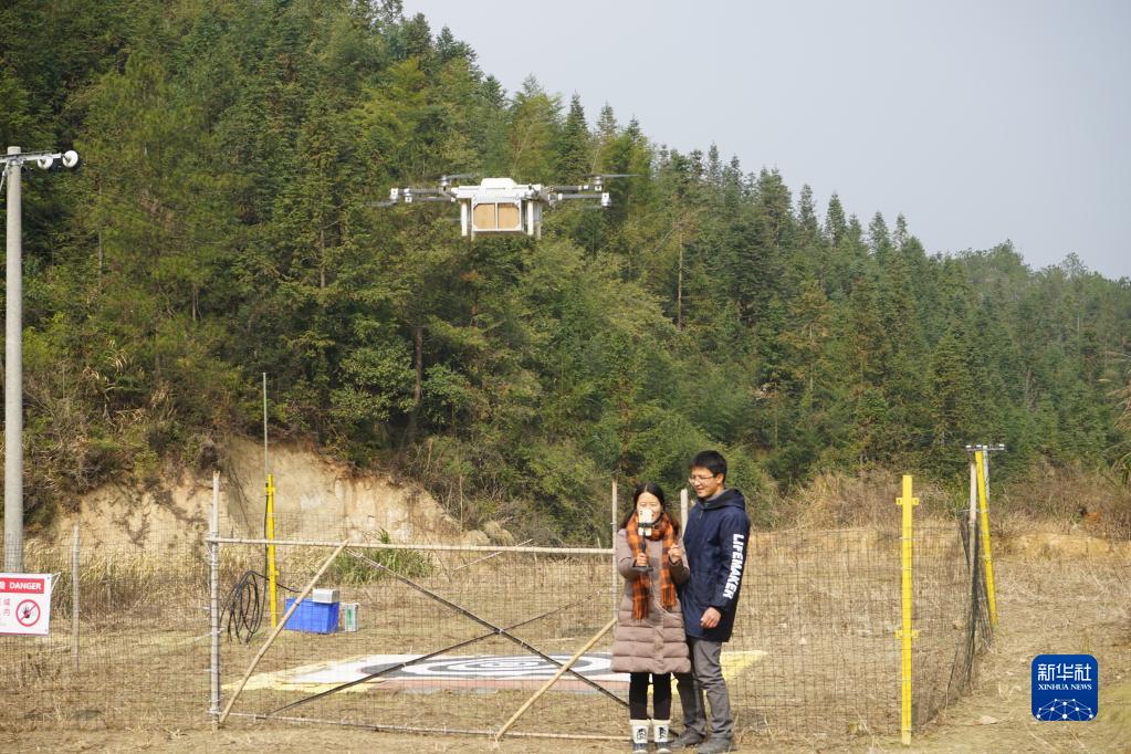 伴隨著螺旋槳的嗡鳴聲,約兩米長的無人機載著打包好的土雞、雞蛋從機坪上穩(wěn)穩(wěn)升空,飛往山外的無人機運營中心。