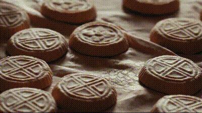 用刻有“福、祿、囍、壽”等字的印模壓印粑