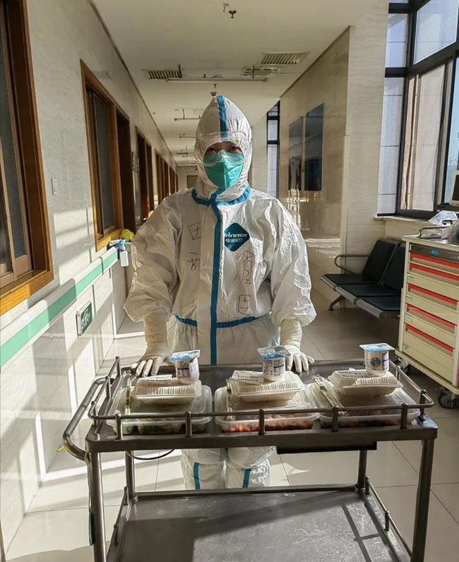 “她總是穿戴合格后,第一個(gè)進(jìn)入防護(hù)區(qū),好像一點(diǎn)也不害怕。”馬甜回憶起第一次與田甜交班時(shí)候的場(chǎng)景,“她會(huì)細(xì)心查看每一個(gè)病人,耐心回答她們的問(wèn)題,不斷觀察、巡視、送飯、打水,每一項(xiàng)護(hù)理都格外認(rèn)真,消殺的時(shí)候也總是不怕臟不怕累地?fù)屩伞?rdquo;