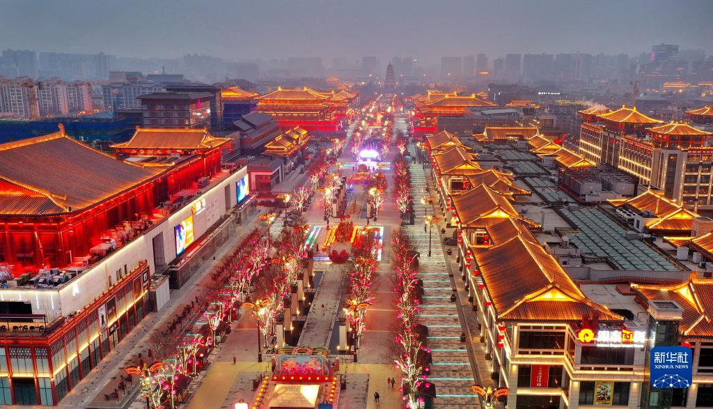 1月21日拍攝的大唐不夜城(無人機照片)。新華社記者 陶明 攝