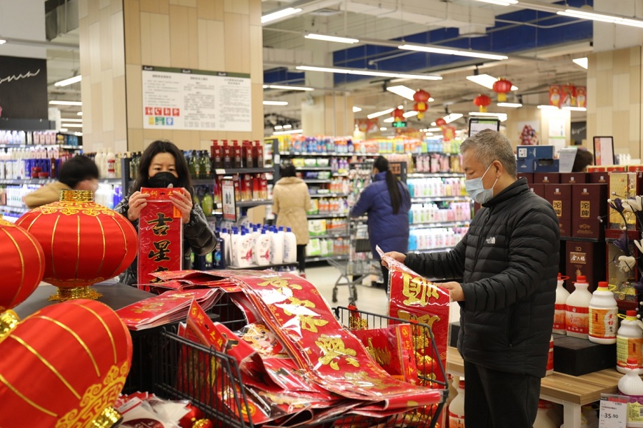 “今天解封了,我們趕緊出來透透氣,也趁機(jī)采購點(diǎn)年貨。”一名在年貨區(qū)挑選對(duì)聯(lián)的市民說,居家防疫期間很多日用品都用完了,在網(wǎng)上購買快遞也不一定能送到,小區(qū)解封后他早早就出門了,準(zhǔn)備多買點(diǎn)東西。