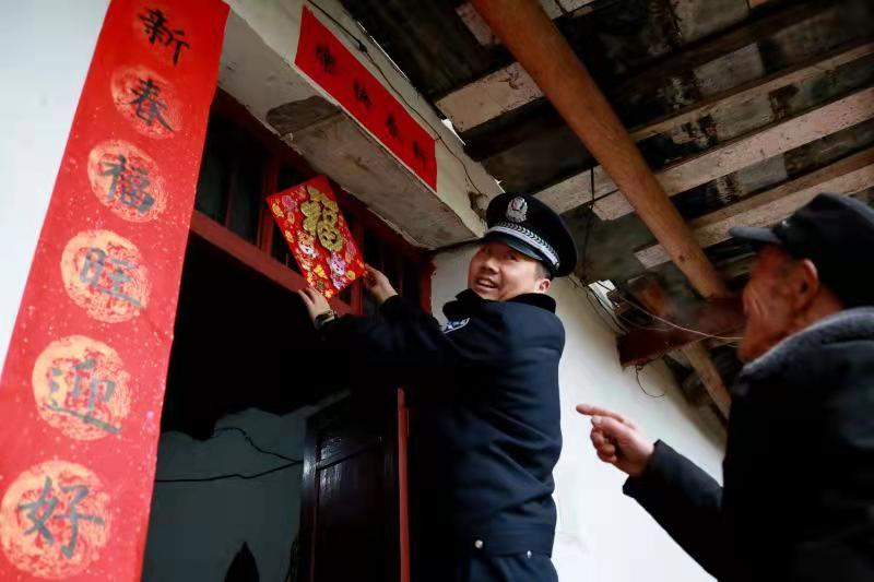 今年得知張有學的兒子、兒媳由于疫情原因可能不回家過年,家里就兩位80多歲的老人和孫女在家。在1月25日小年這天,王鵬提前給老人準備好了年貨,帶著民警來張有學家?guī)兔ΑT趶堄袑W家里,王鵬和老人搭伙貼好了新年對聯(lián)、幫老人整理好柴火,所里的年輕民警也主動和小慧姐妹溝通學習情況,為她們的學習加油鼓勁。