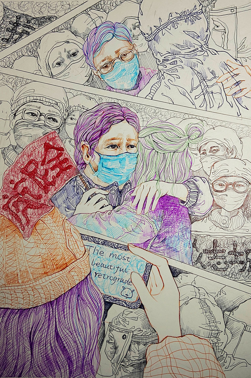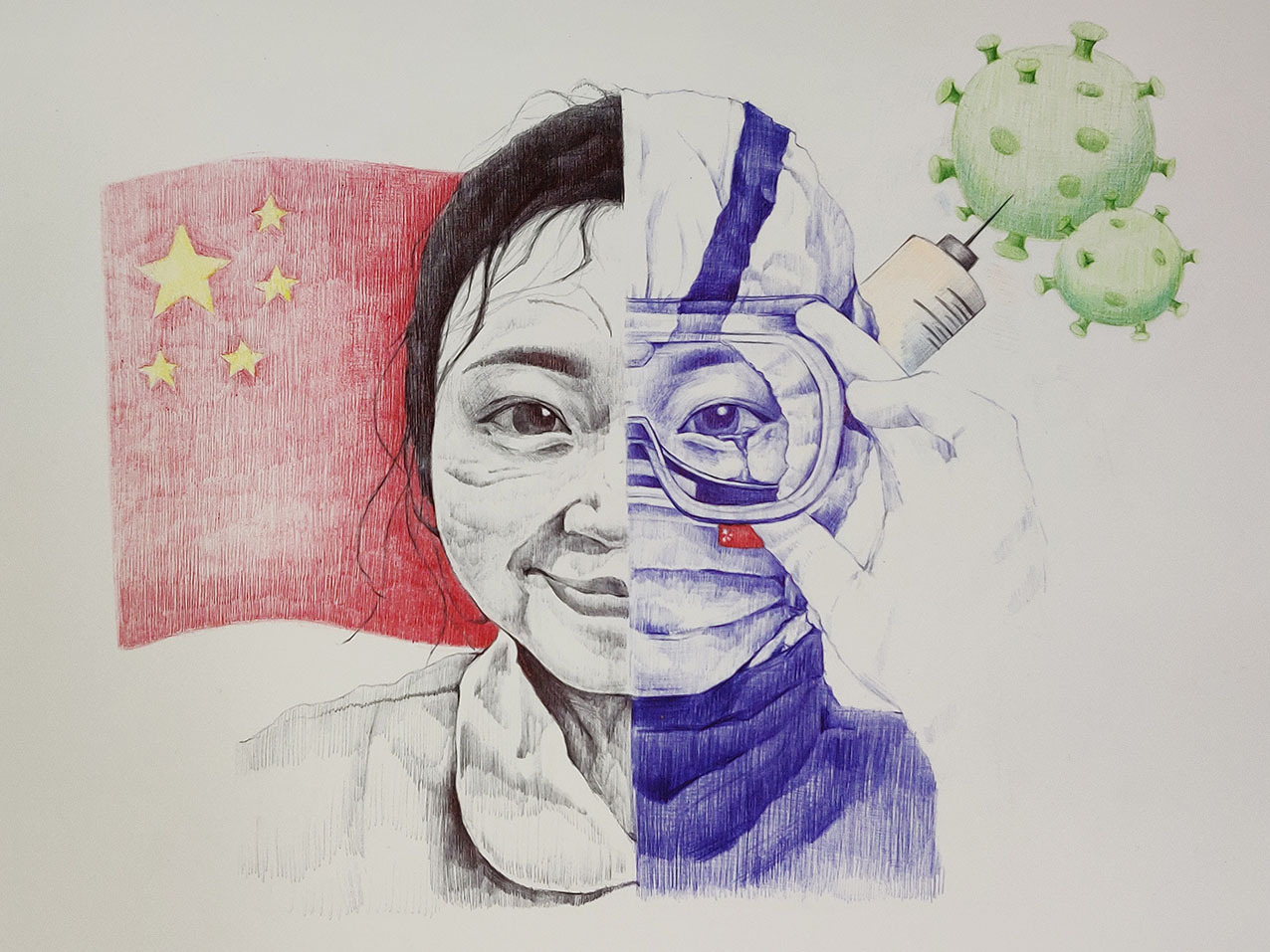 2021年12月,新冠肺炎疫情在西安突然暴發(fā),面對(duì)突如其來的疫情和嚴(yán)峻復(fù)雜的防控形勢,在加強(qiáng)落實(shí)疫情防控、保障師生健康的同時(shí),西安工程大學(xué)服裝與藝術(shù)設(shè)計(jì)學(xué)院積極應(yīng)對(duì),組織全院師生有序、規(guī)范開啟2021年秋季期末課程結(jié)課的線上教學(xué)。任課教師及時(shí)調(diào)整結(jié)課作業(yè)主題,充分利用視覺傳達(dá)設(shè)計(jì)專業(yè)特點(diǎn),組織同學(xué)們嚴(yán)謹(jǐn)認(rèn)真、激情飽滿地用畫筆以藝抗疫,致敬最美逆行者!