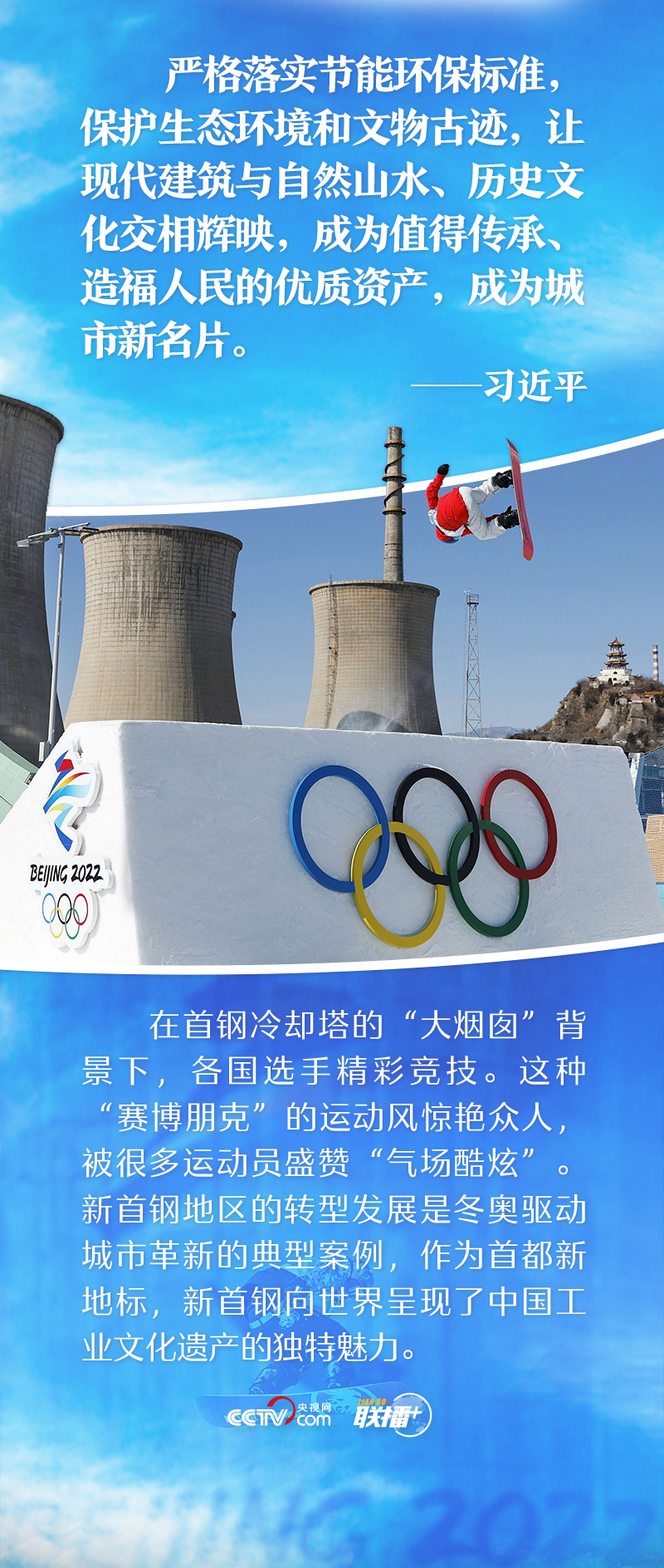 從索契到洛桑,從崇禮到北京,習(xí)近平總書(shū)記一路引領(lǐng),為辦好這場(chǎng)冬奧盛會(huì)擘畫(huà)冰雪藍(lán)圖??倳?shū)記強(qiáng)調(diào)“把綠色發(fā)展理念貫穿籌辦工作始終”“為冬奧會(huì)打下美麗中國(guó)底色”“確保人們既能盡享冰雪運(yùn)動(dòng)的無(wú)窮魅力,又能盡覽大自然的生態(tài)之美”……