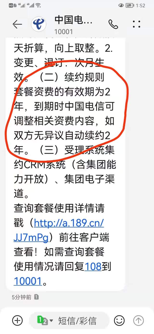 我當(dāng)時辦理業(yè)務(wù)的時候,電信業(yè)務(wù)員給我說的是套餐兩年不變,也沒說不能轉(zhuǎn)網(wǎng)。而且我的套餐詳情里續(xù)約規(guī)則顯示套餐資費(fèi)的有效期為2年,到期時中國電信可調(diào)整相關(guān)資費(fèi)內(nèi)容,如雙方無異議自動續(xù)約2年。