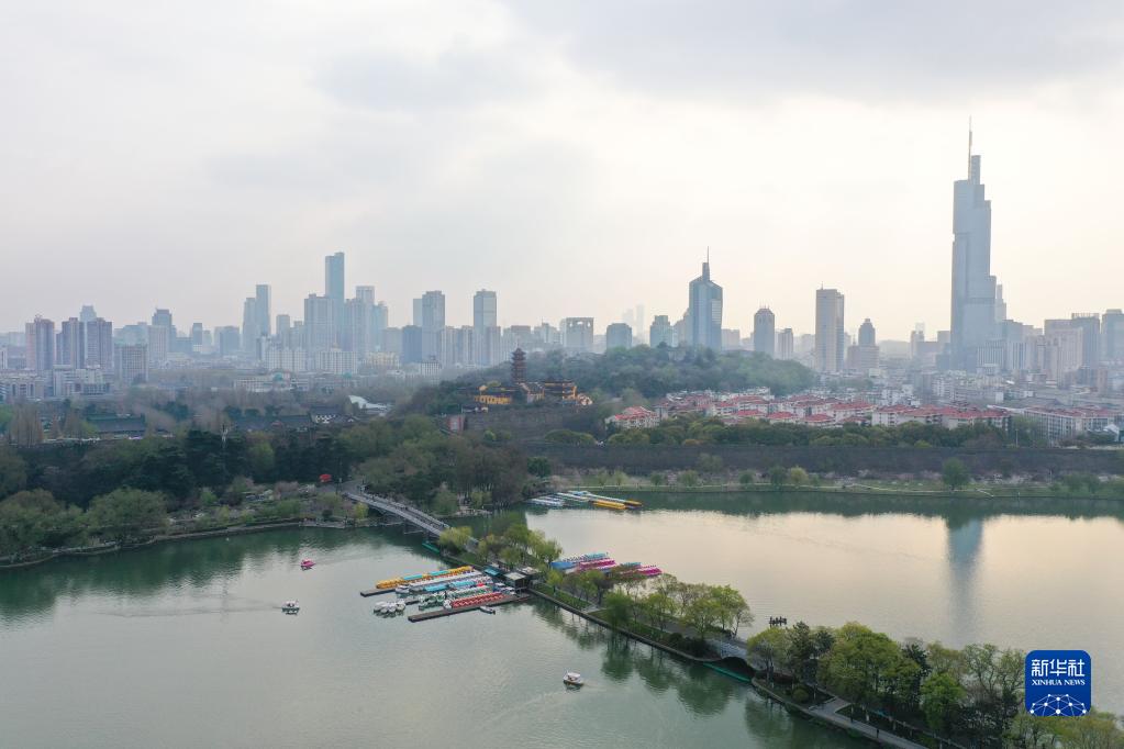 3月23日,游人在南京玄武湖公園游玩(無(wú)人機(jī)照片)。新華社記者 季春鵬 攝