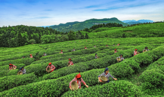 “應(yīng)時飲茶最養(yǎng)人,春游出行正當(dāng)時”,新春已至,春芽已經(jīng)冒頭,正是品茗好時節(jié)。白馬山仙女紅明前茶進(jìn)入采摘期,漫山的茶園翠色欲滴,寫滿了綠意,連空氣里都是清冽的茶香。海拔1300米的白馬山天尺茶區(qū)正處在重慶武隆的T字型小氣候區(qū)域中,頻繁驟變的溫差使得這里產(chǎn)出的茶葉內(nèi)質(zhì)物更為豐富,呈現(xiàn)出獨特的香氣。