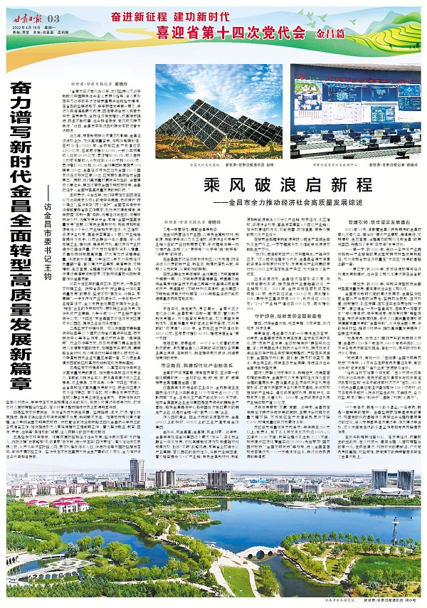 近幾年,克服新冠肺炎疫情不利影響,金昌經(jīng)濟(jì)逆勢(shì)上揚(yáng),交出高質(zhì)量答卷,體現(xiàn)出超強(qiáng)韌性。王鈞介紹:“2021年,全市地區(qū)生產(chǎn)總值達(dá)到428.6億元、五年累計(jì)增長(zhǎng)42.9%,一般公共預(yù)算收入達(dá)到26.98億元、累計(jì)增長(zhǎng)30.1%,城鄉(xiāng)居民人均可支配收入分別達(dá)到45649元和18500元、累計(jì)增長(zhǎng)42.2%和50.4%,金川集團(tuán)躍居世界500強(qiáng)第336位,金昌經(jīng)濟(jì)開(kāi)發(fā)區(qū)位列全國(guó)217個(gè)國(guó)家級(jí)經(jīng)濟(jì)開(kāi)發(fā)區(qū)第78位、區(qū)域帶動(dòng)單項(xiàng)指標(biāo)全國(guó)第三。同時(shí),我們高質(zhì)量打贏脫貧攻堅(jiān)戰(zhàn),全面建成小康社會(huì),第三次榮獲全國(guó)文明城市稱號(hào),金昌已經(jīng)步入全面轉(zhuǎn)型高質(zhì)量發(fā)展的新階段。”