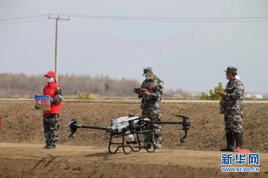 北大荒集團(tuán)建三江分公司八五九農(nóng)場(chǎng)有限公司無(wú)人植保機(jī)噴肥比賽現(xiàn)場(chǎng)。新華網(wǎng)發(fā)(杜雨潤(rùn) 攝)