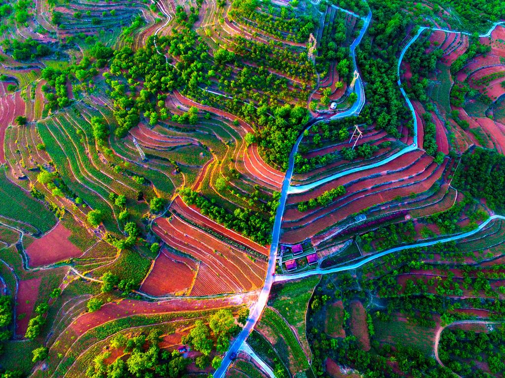 2017年5月,東蓮花院鎮(zhèn)花鄉(xiāng)果巷項(xiàng)目區(qū)域俯瞰(無人機(jī)照片)。王愛軍攝