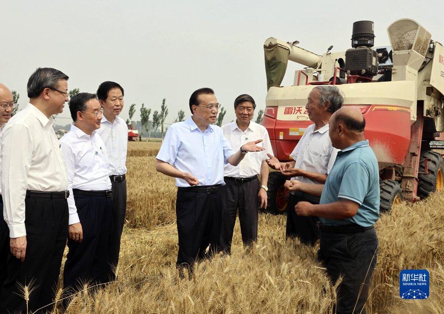 6月21日,中共中央政治局常委、國務(wù)院總理李克強(qiáng)在河北高碑店、涿州考察。這是李克強(qiáng)來到高碑店大鋪村,察看晾曬的小麥后,與村民圍坐交談。 新華社記者 劉衛(wèi)兵 攝