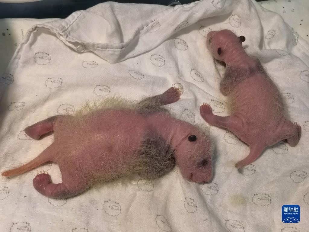 這是8月4日拍攝的海歸大熊貓“二順”產(chǎn)下的大熊貓雙胞胎幼仔。新華社發(fā)(重慶動物園供圖)