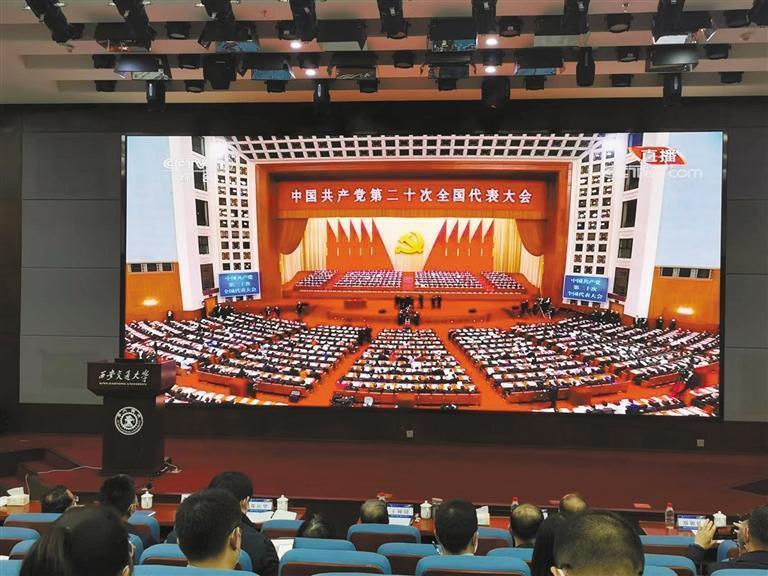 10月16日,西安交通大學(xué)組織師生集中收看黨的二十大開幕會。記者 呂揚攝