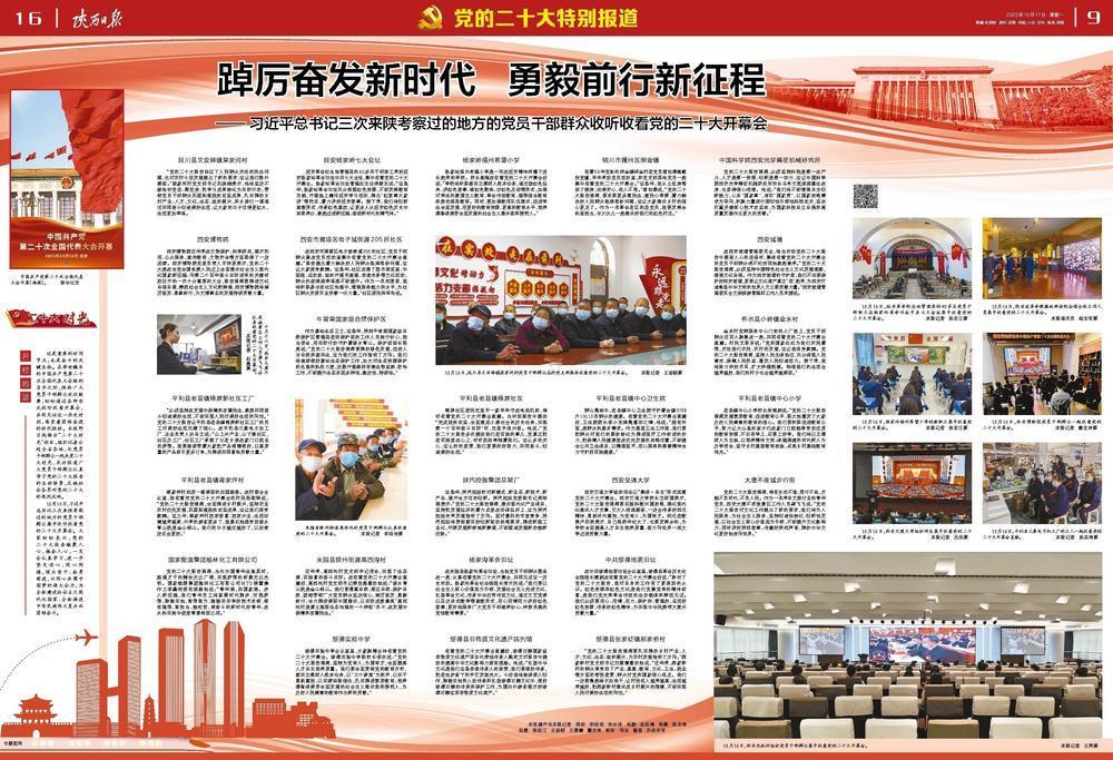 這是重要的時間節(jié)點,也是奮斗的關(guān)鍵坐標。在舉世矚目的中國共產(chǎn)黨第二十次全國代表大會勝利召開之際,陜西廣大黨員干部群眾歡欣鼓舞,紛紛通過各種形式收聽收看開幕會,共同見證這一歷史時刻,感受著團結(jié)奮進的時代脈動。本報即日起推出“二十大時光”欄目,組織記者分赴全省各地,與黨員干部群眾一起共度二十大時光,采訪報道廣大黨員干部群眾認真學(xué)習(xí)黨的二十大報告的生動場景,反映社會各界對黨的二十大的熱烈反響。