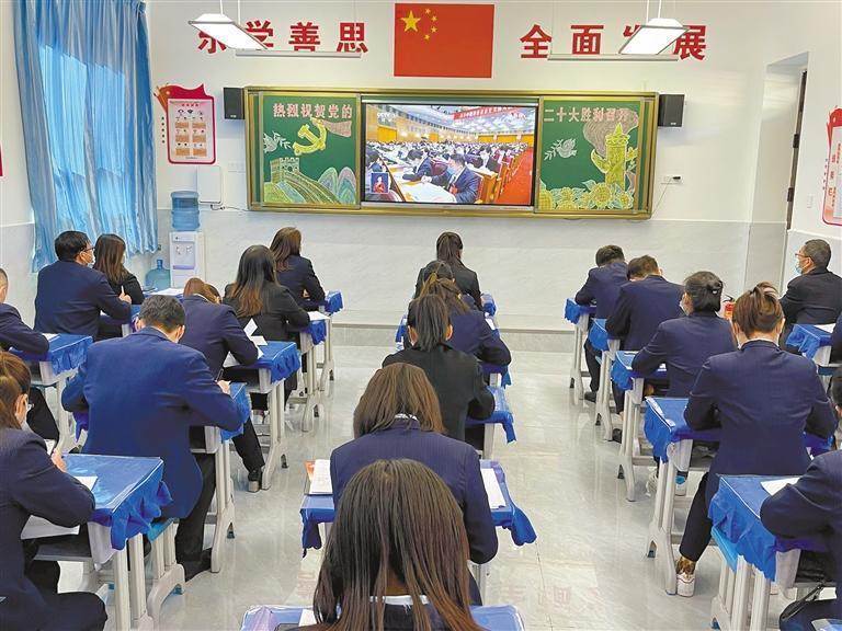10月16日,楊家?guī)X福州希望小學(xué)的教職工集中收看黨的二十大開幕會。記者 陳宏江攝