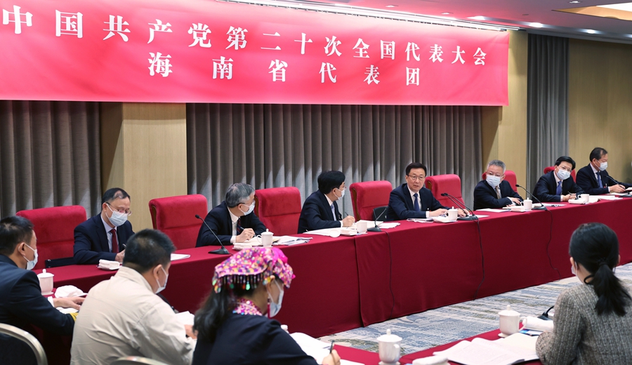 ?。ǘ笫軝?quán)發(fā)布)韓正在參加黨的二十大海南省代表團討論時強調(diào) 深刻領(lǐng)悟“兩個確立”的決定性意義 堅定不移推進中華民族偉大復興歷史進程