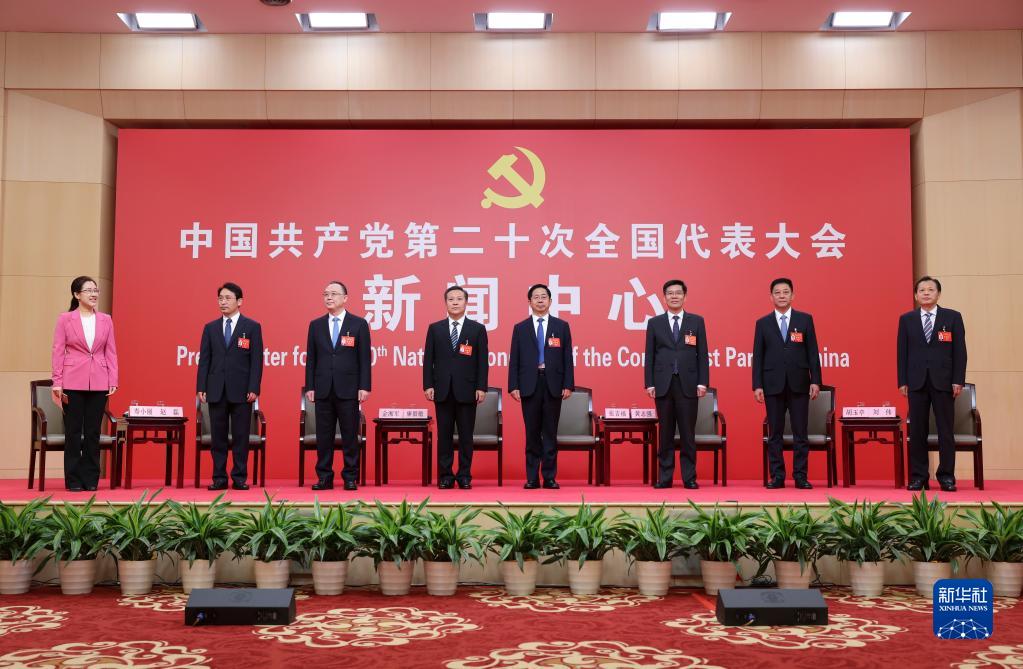 10月18日,中國共產(chǎn)黨第二十次全國代表大會新聞中心舉行集體采訪,請北京、天津、河北、山西、內(nèi)蒙古、遼寧、吉林代表團(tuán)新聞發(fā)言人出席,介紹代表團(tuán)學(xué)習(xí)討論二十大報告情況,并回答記者提問。新華社記者 陳建力 攝