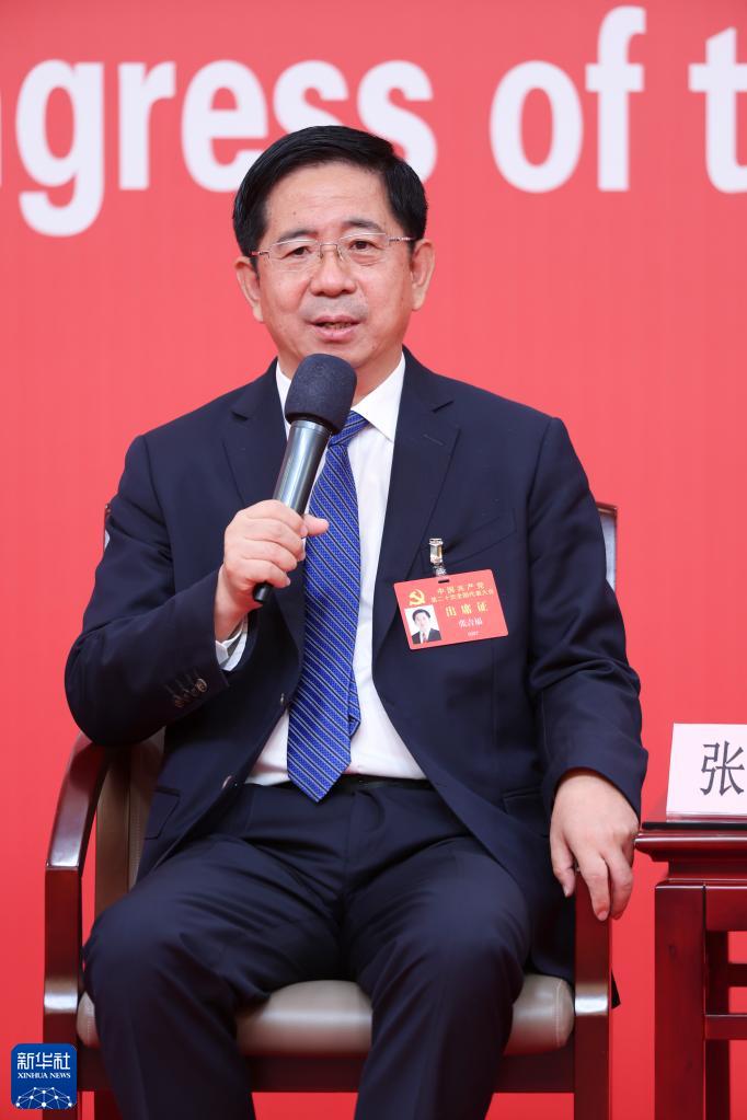 10月18日,中國共產(chǎn)黨第二十次全國代表大會新聞中心舉行集體采訪,請北京、天津、河北、山西、內(nèi)蒙古、遼寧、吉林代表團(tuán)新聞發(fā)言人出席,介紹代表團(tuán)學(xué)習(xí)討論二十大報告情況,并回答記者提問。這是山西省委常委、常務(wù)副省長張吉福在回答記者提問。新華社記者 陳建力 攝