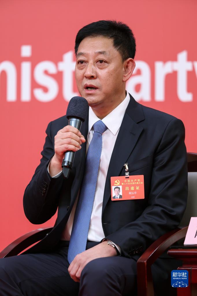 10月18日,中國共產(chǎn)黨第二十次全國代表大會新聞中心舉行集體采訪,請北京、天津、河北、山西、內(nèi)蒙古、遼寧、吉林代表團(tuán)新聞發(fā)言人出席,介紹代表團(tuán)學(xué)習(xí)討論二十大報告情況,并回答記者提問。這是遼寧省委副書記、大連市委書記胡玉亭在回答記者提問。新華社記者 陳建力 攝