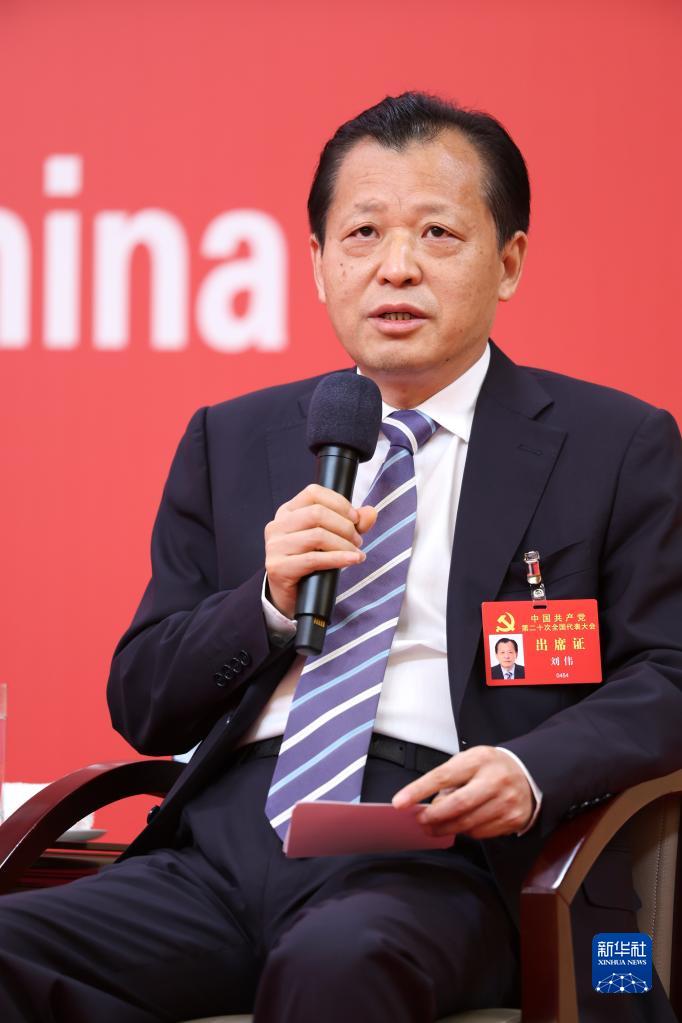 10月18日,中國共產(chǎn)黨第二十次全國代表大會新聞中心舉行集體采訪,請北京、天津、河北、山西、內(nèi)蒙古、遼寧、吉林代表團(tuán)新聞發(fā)言人出席,介紹代表團(tuán)學(xué)習(xí)討論二十大報告情況,并回答記者提問。這是吉林省委副書記劉偉在回答記者提問。新華社記者 陳建力 攝