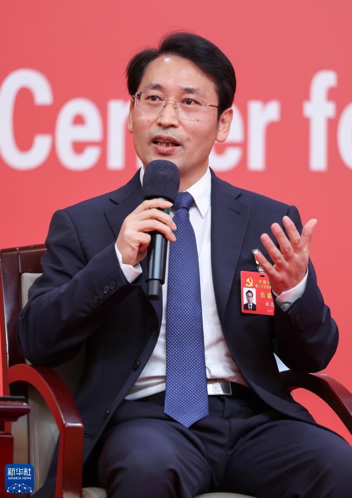 10月18日,中國共產(chǎn)黨第二十次全國代表大會新聞中心舉行集體采訪,請北京、天津、河北、山西、內(nèi)蒙古、遼寧、吉林代表團(tuán)新聞發(fā)言人出席,介紹代表團(tuán)學(xué)習(xí)討論二十大報告情況,并回答記者提問。這是北京市委常委、秘書長趙磊在回答記者提問。新華社記者 陳建力 攝
