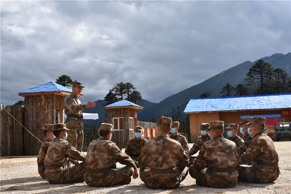 10月17日,西藏林芝軍分區(qū)“墨脫戍邊模范營(yíng)”組織官兵學(xué)習(xí)黨的二十大報(bào)告。新華社發(fā)(游毅 攝)