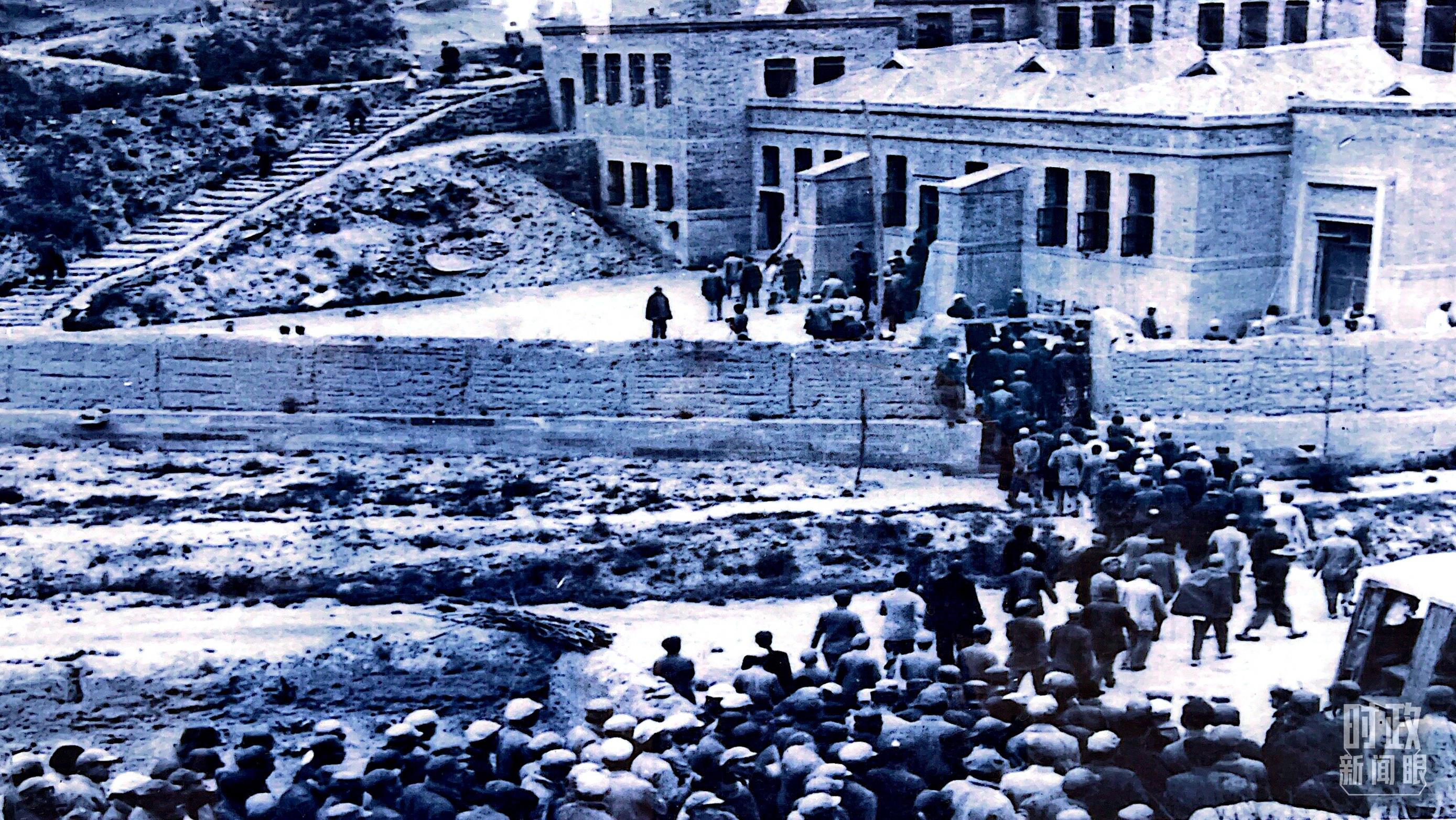 △中共七大代表進(jìn)入會(huì)場的老照片。(總臺(tái)央視記者盧心雨提供)