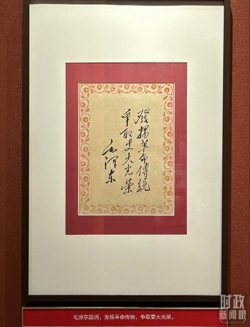 △毛澤東題詞:發(fā)揚(yáng)革命傳統(tǒng),爭取更大光榮。(總臺(tái)央視記者范一鳴拍攝)
