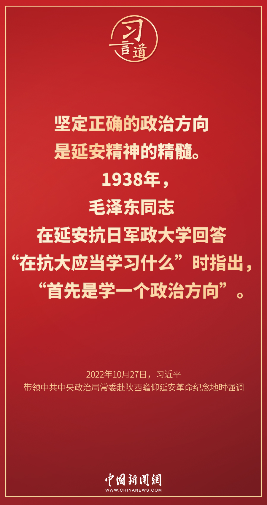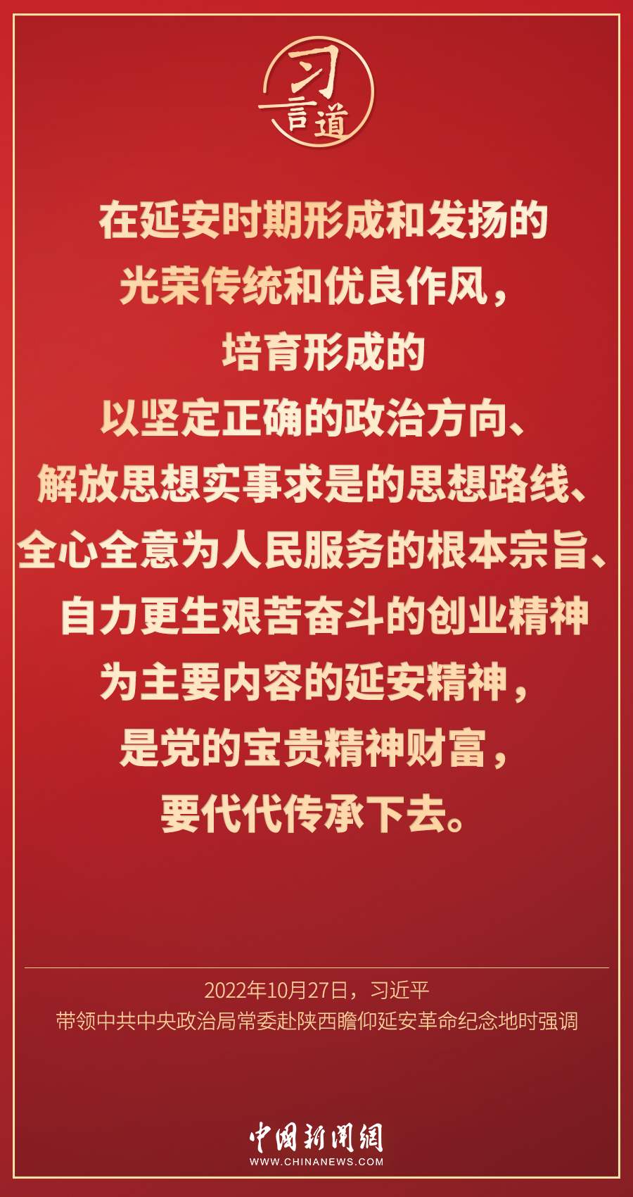 黨的二十大閉幕不到一周,中共中央總書記、國家主席、中央軍委主席習(xí)近平帶領(lǐng)中共中央政治局常委李強、趙樂際、王滬寧、蔡奇、丁薛祥、李希,專程從北京前往陜西延安,瞻仰延安革命紀(jì)念地。此行中,習(xí)近平多次談到延安精神——