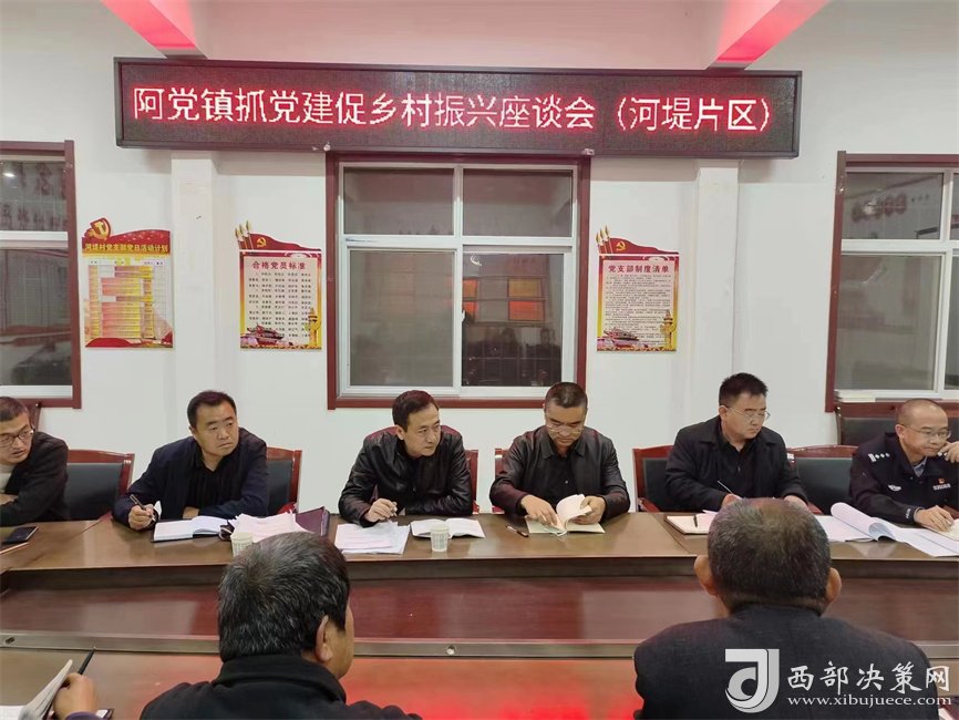(西部決策網(wǎng)訊 齊春梅)11月7日下午全縣抓黨建促鄉(xiāng)村振興動員大會結(jié)束后,黃陵縣阿黨鎮(zhèn)四圣片區(qū)包聯(lián)縣級領(lǐng)導(dǎo)省黃帝陵文化園區(qū)黨工委副書記、縣委常委、政法委書記馮浩斌同志,河堤片區(qū)包聯(lián)縣級領(lǐng)導(dǎo)縣法院黨組書記、院長周海龍同志分別帶領(lǐng)縣委政法委、縣退役軍人事務(wù)局、縣法院、縣住建局等9個包聯(lián)單位鄉(xiāng)村振興“特派專員”,分別在阿黨鎮(zhèn)政府、河堤村召開阿黨鎮(zhèn)抓黨建促鄉(xiāng)村振興座談會。阿黨鎮(zhèn)主要領(lǐng)導(dǎo)、四圣片區(qū)、河堤片區(qū)包村領(lǐng)導(dǎo)、村黨支部書記、第一書記參加會議。