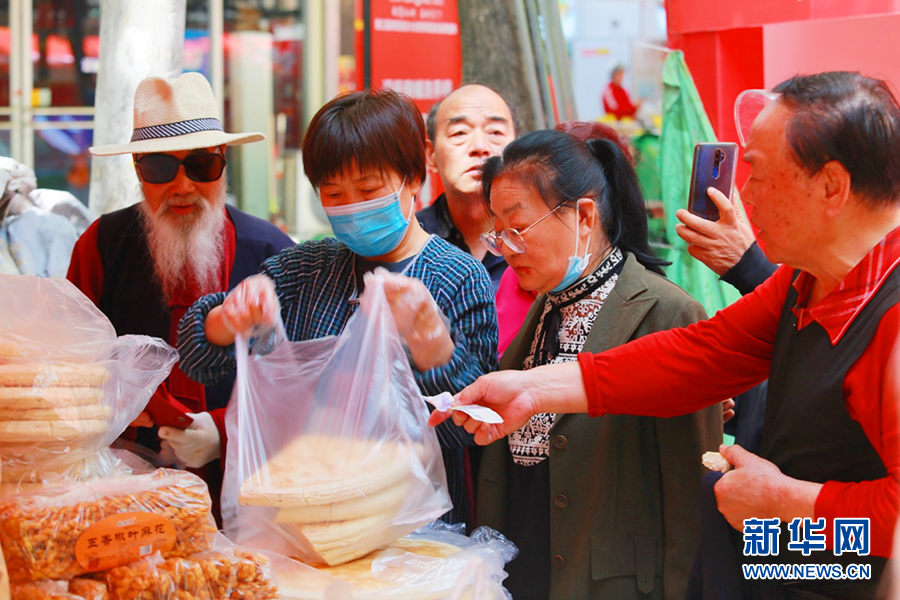 在第三屆陜西面食大會(huì)現(xiàn)場(chǎng),觀眾購(gòu)買(mǎi)面食鍋盔。新華網(wǎng) 楊喜龍 攝