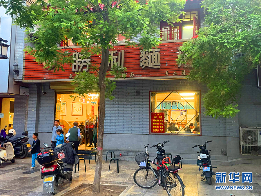 傍晚時(shí)分,勝利面莊不時(shí)還有食客出出進(jìn)進(jìn)。新華網(wǎng) 楊喜龍 攝