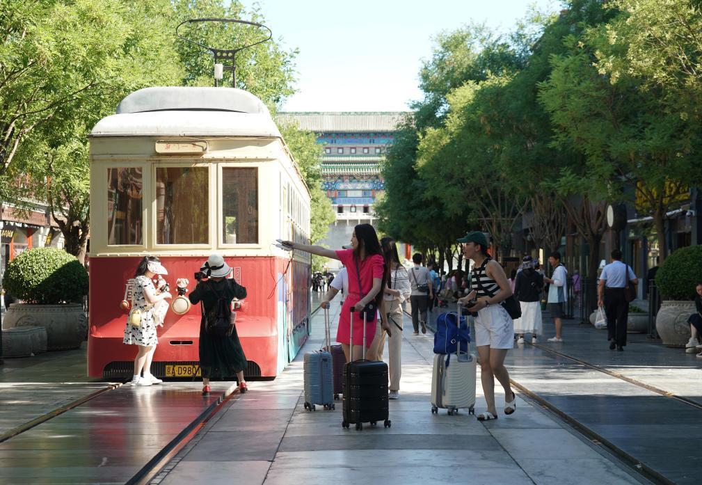 7月9日,人們在前門大街參觀游覽。新華社記者 任超 攝