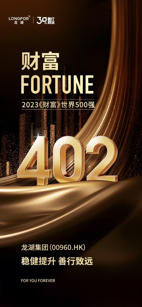 8月2日,2023年《財富》世界500強排行榜發(fā)布,憑借2022年收入、利潤的穩(wěn)健增長,龍湖集團連續(xù)三年入圍榜單,排名持續(xù)提升第402位。