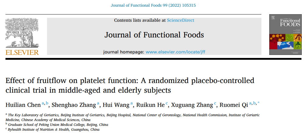 此次湯臣倍健申報的新絡(luò)素片,以Fruitflow®(輕絡(luò)素)針對中國人群血流健康影響的臨床驗證及相關(guān)機制研究,填補了國內(nèi)該功能評價體系的空白,研究成果相繼發(fā)表在《JournalofFunctionalFoods》《FrontiersinNutrition》等國際權(quán)威雜志。