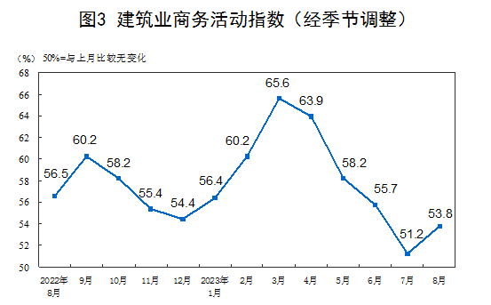 8月份,非制造業(yè)商務(wù)活動(dòng)指數(shù)為51.0%,比上月下降0.5個(gè)百分點(diǎn),仍高于臨界點(diǎn),非制造業(yè)持續(xù)擴(kuò)張。