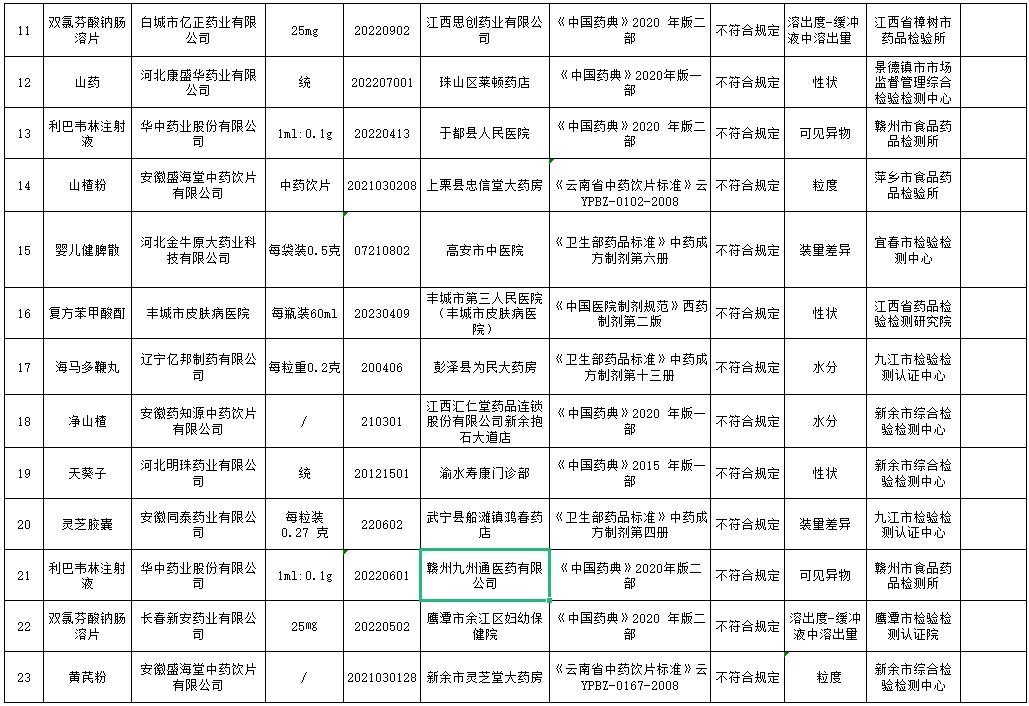 為加強(qiáng)藥品質(zhì)量監(jiān)管,保障公眾用藥安全,根據(jù)《中華人民共和國(guó)藥品管理法》及相關(guān)法律法規(guī)和江西省藥品抽檢計(jì)劃,我省各級(jí)藥品監(jiān)管部門(mén)和檢驗(yàn)機(jī)構(gòu)對(duì)全省藥品生產(chǎn)、經(jīng)營(yíng)和使用單位實(shí)施了監(jiān)督抽檢。現(xiàn)將本期藥品抽檢信息通報(bào)如下: