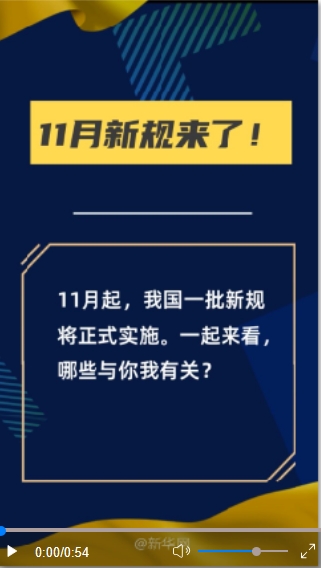 11月起,一批新規(guī)將正式實(shí)施。一起來看,哪些與你我有關(guān)?(文字來源:新華社 視頻剪輯:盧俊宇 終審:陳競超)
